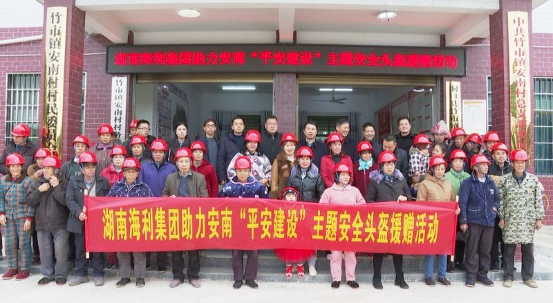 刘卫东一行实地察看了海利集团为安南村出资修建的“海利二桥”,以及该村高标准农田建设项目和清潭波水渠改造项目施工现场;在安南村村级活动中心举行了湖南海利集团助力安南“平安建设”安全头盔援赠活动,为该村捐赠450顶安全头盔;并来到安南完小,举行海利集团团委“心系教育陪伴成长”援捐助学活动,为该校赠送了价值7000余元的运动器材和学习用品。
