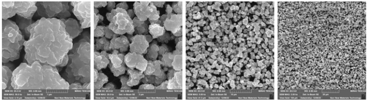 本产品生产采用特殊的共沉淀法合成小粒径镍锰二元前驱体,采用分段式气氛烧结技术,合成的裸料结构稳定,电化学性能优越,同时兼顾高比容量和循环性稳定性,具有性价比高的特点。