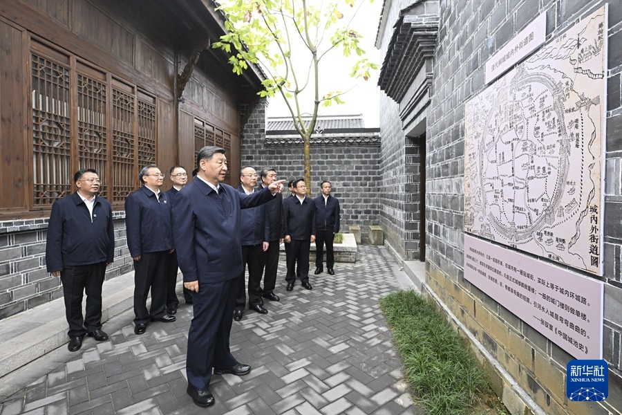 10月17日至18日,中共中央总书记、国家主席、中央军委主席习近平在安徽考察。这是17日下午,习近平在安庆桐城市六尺巷考察。新华社记者燕雁摄
