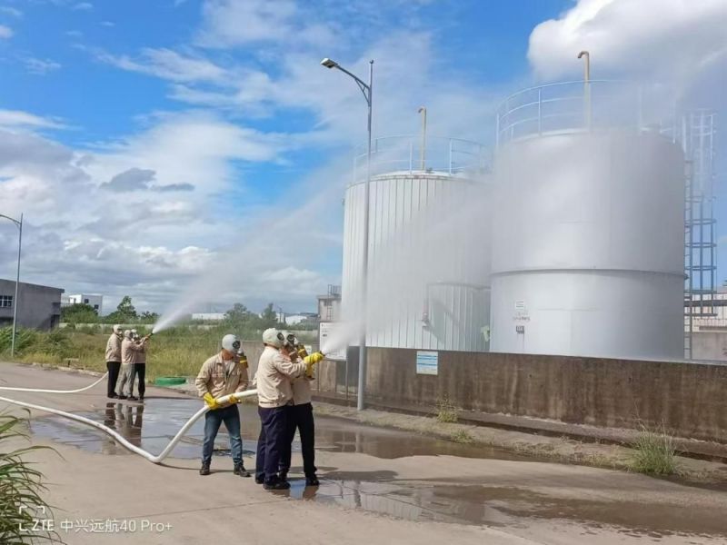 为提高员工安全防范意识,规范生产应急救援管理,全面提升企业生产安全事故应急处置能力和应对突发事件的快速反应能力、协同联动的救援能力,海利贵溪新材料科技有限公司以安全生产月为契机,于2024年7月25日组织开展了一次硫酰氯泄漏、中毒、着火事故综合应急救援演练。贵溪公司党委书记、董事长、总经理伍海波任演练总指挥,贵溪市应急管理局副局长张跃兴带队亲临指导,贵溪公司高管、相关应急救援分队共计60余名干部职工参加。